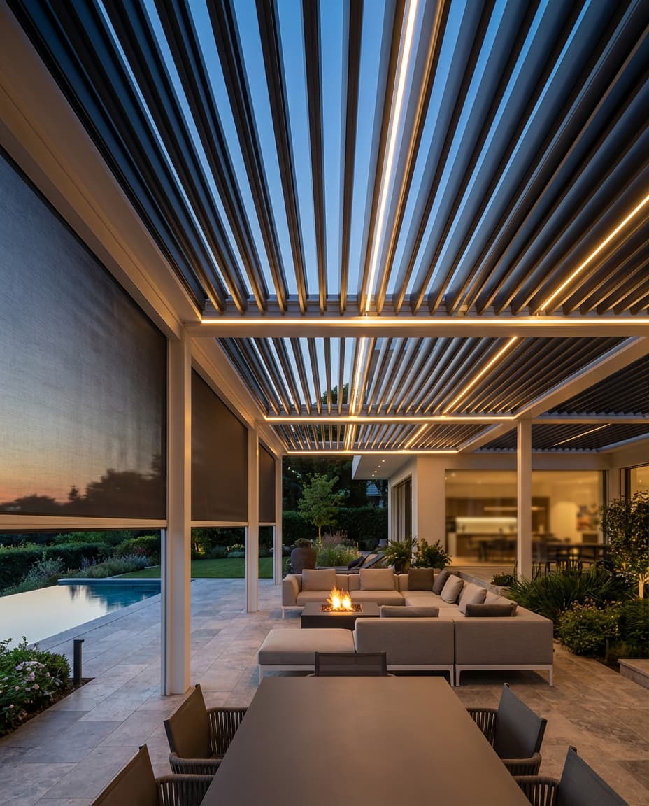 Lamellendächer sind moderne, modulare Formen der Terrassenüberdachung und eine flexible Alternative zum klassischen Terrassendach. Verstellbare Alu Lamellen passen sich individuell an Sonne, Regen, Wind und Temperatur an und ermöglichen die aktive Steuerung von Sonneneinstrahlung, Belüftung und Wetterschutz.
